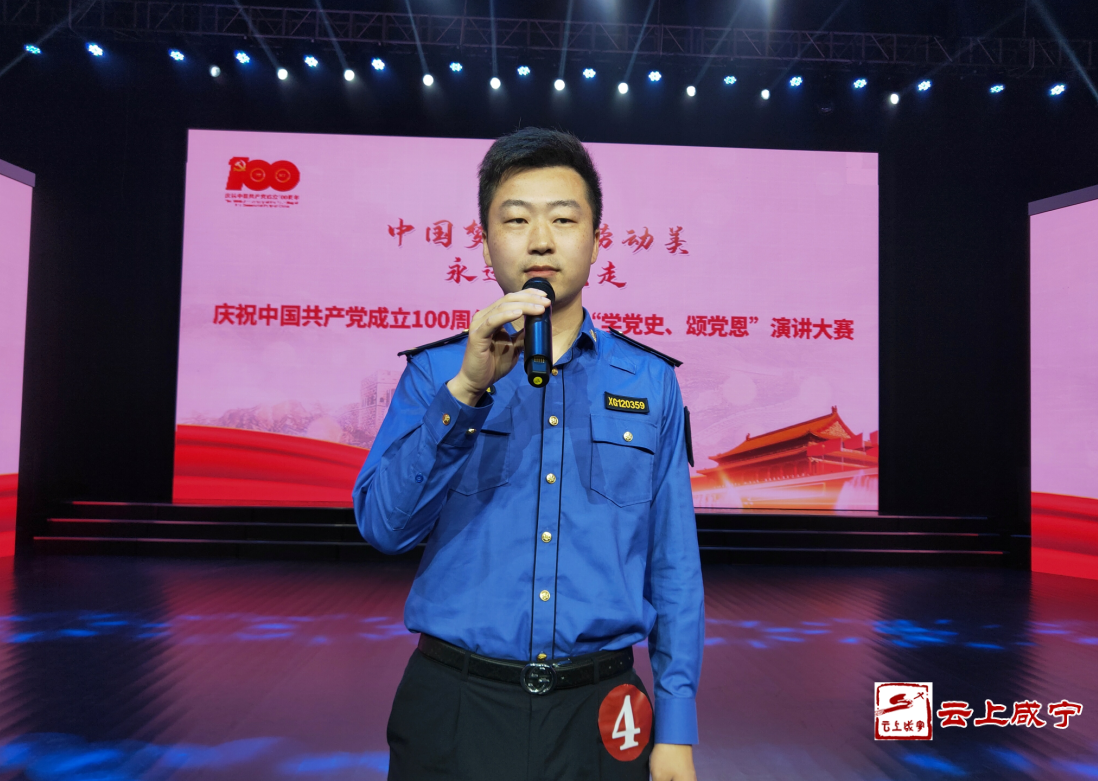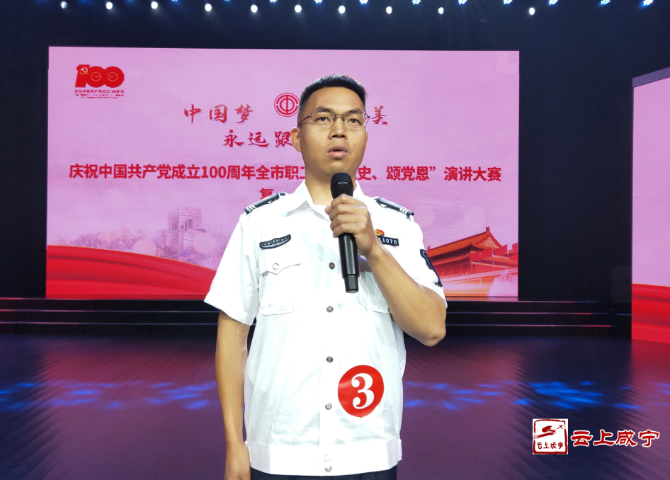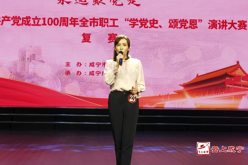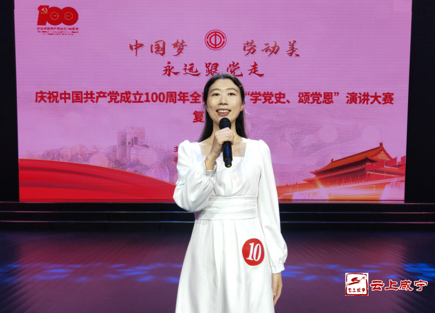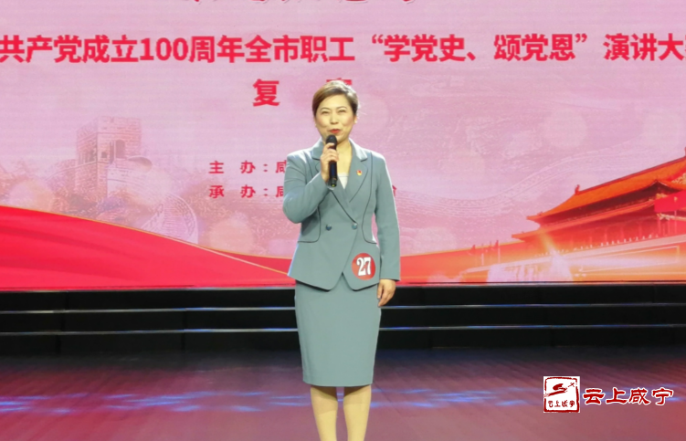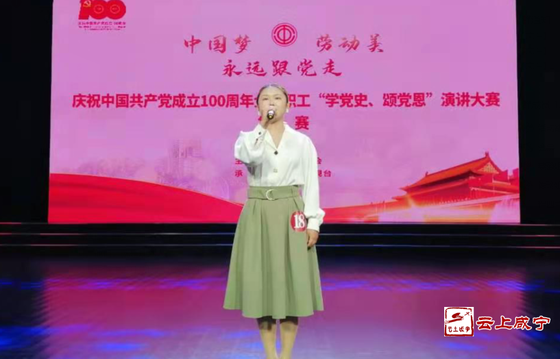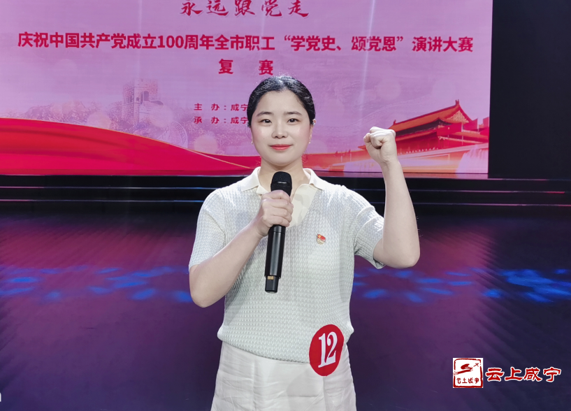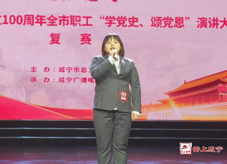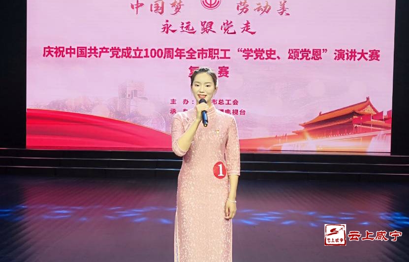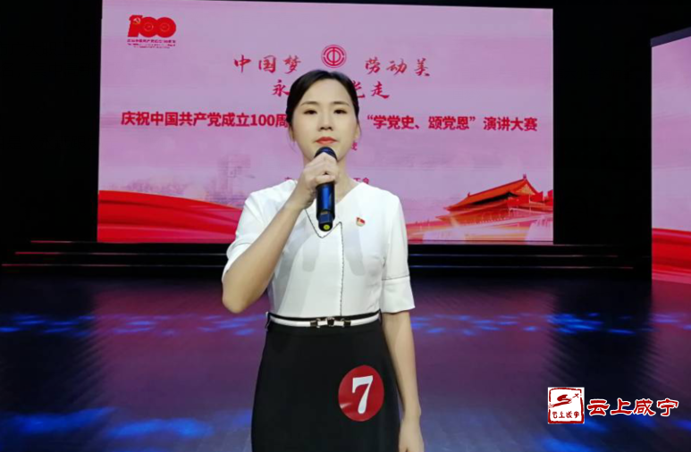 没有共产党就没有新中国!来自广电网络咸宁分公司的19号选手余妮带来的演讲题目是《学党史颂党恩 为民服务建新功》。