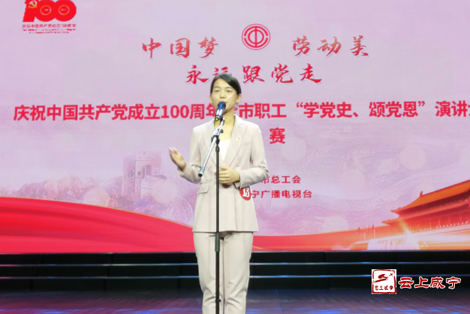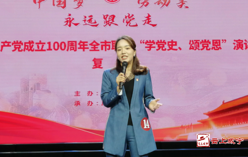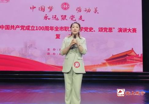 21号选手陈菁演讲的题目是《百年奋进跟党走 红船风华映初心》,陈菁时而满怀深情,时而激昂慷慨,展示了市农行青年员工们蓬勃向上面貌。