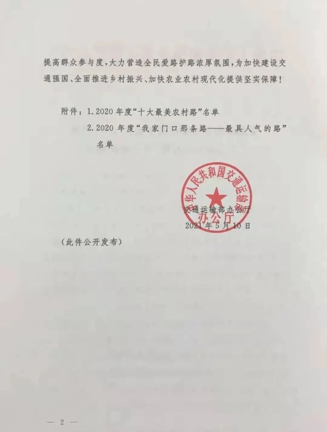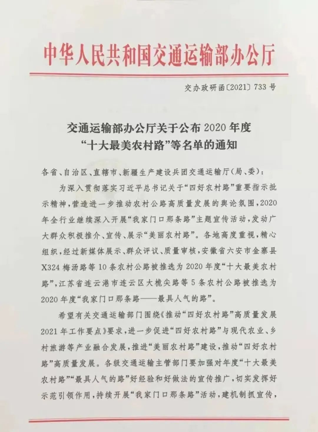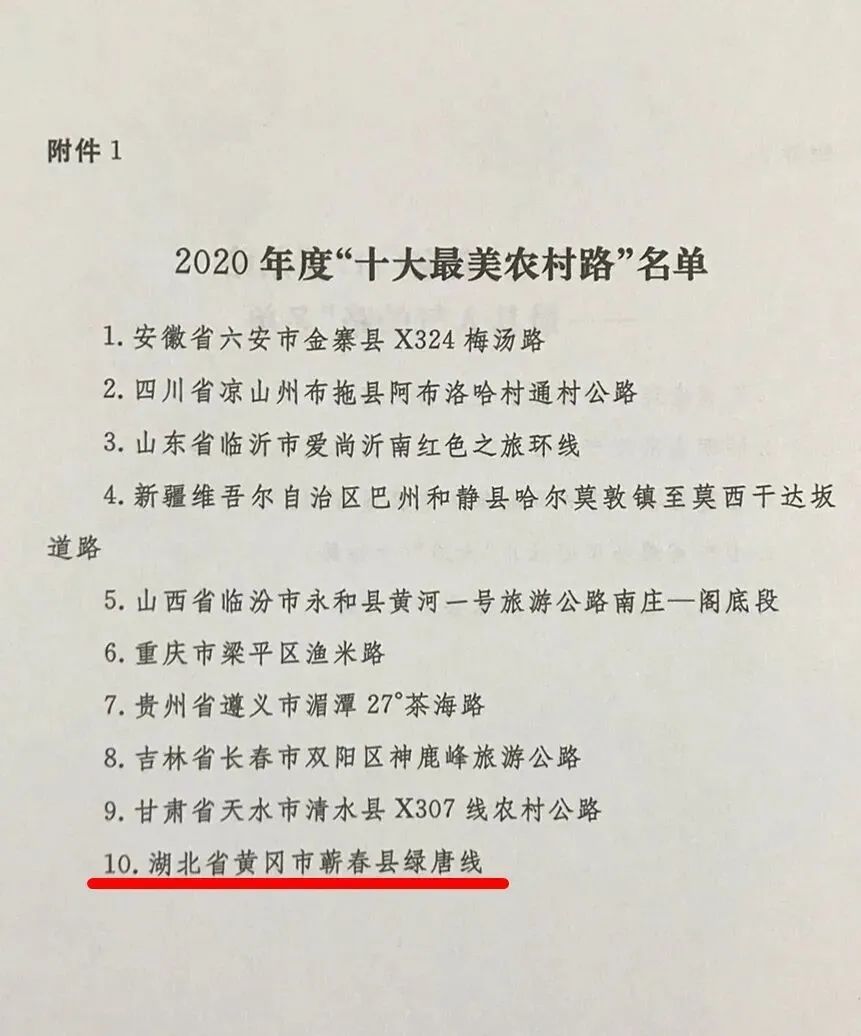 近日,交通运输部公布2020年度“十大最美农村路”评选结果,湖北省黄冈市蕲春县绿塘线成功入选全国“十大最美农村路”。