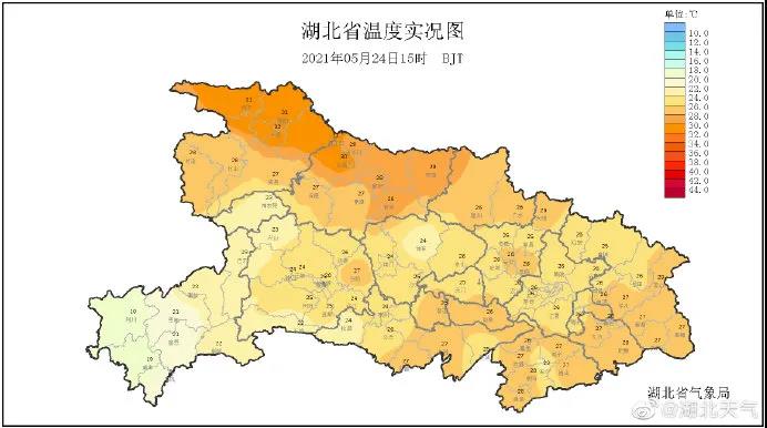 最高气温:鄂西北27~30℃;其他地区22~25℃