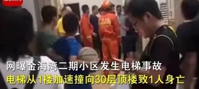5月23日,有网友爆料称,广东湛江一小区发生电梯事故,电梯从1楼加速撞向30层顶楼,事故导致致1人身亡。