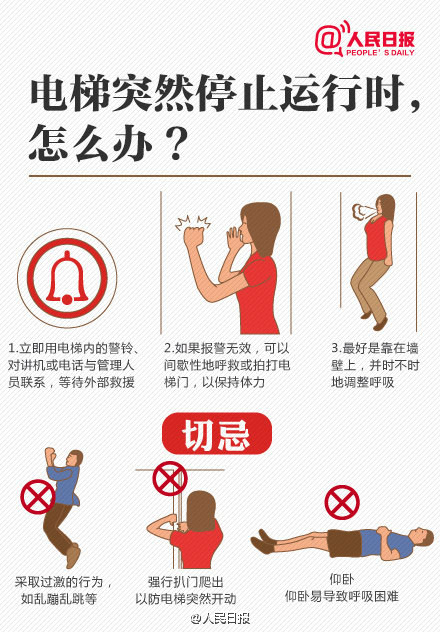 ④头背紧贴电梯壁,紧握扶手,或用手抱颈膝盖弯曲
