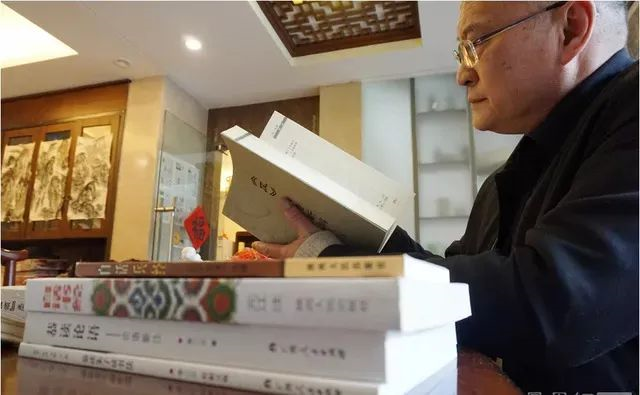张二江现在每天最主要的时间花在读书和写作上,偶尔会参加一些朋友组织的饭局。“另外我在一个民办大学兼职当老师,偶尔会去上上课,做做研究,拿点基本的生活费。现在身体也大不如前,治病也需要花钱,很多时候要靠朋友们接济。”图为张二江站在自己的国学工作室门口。
