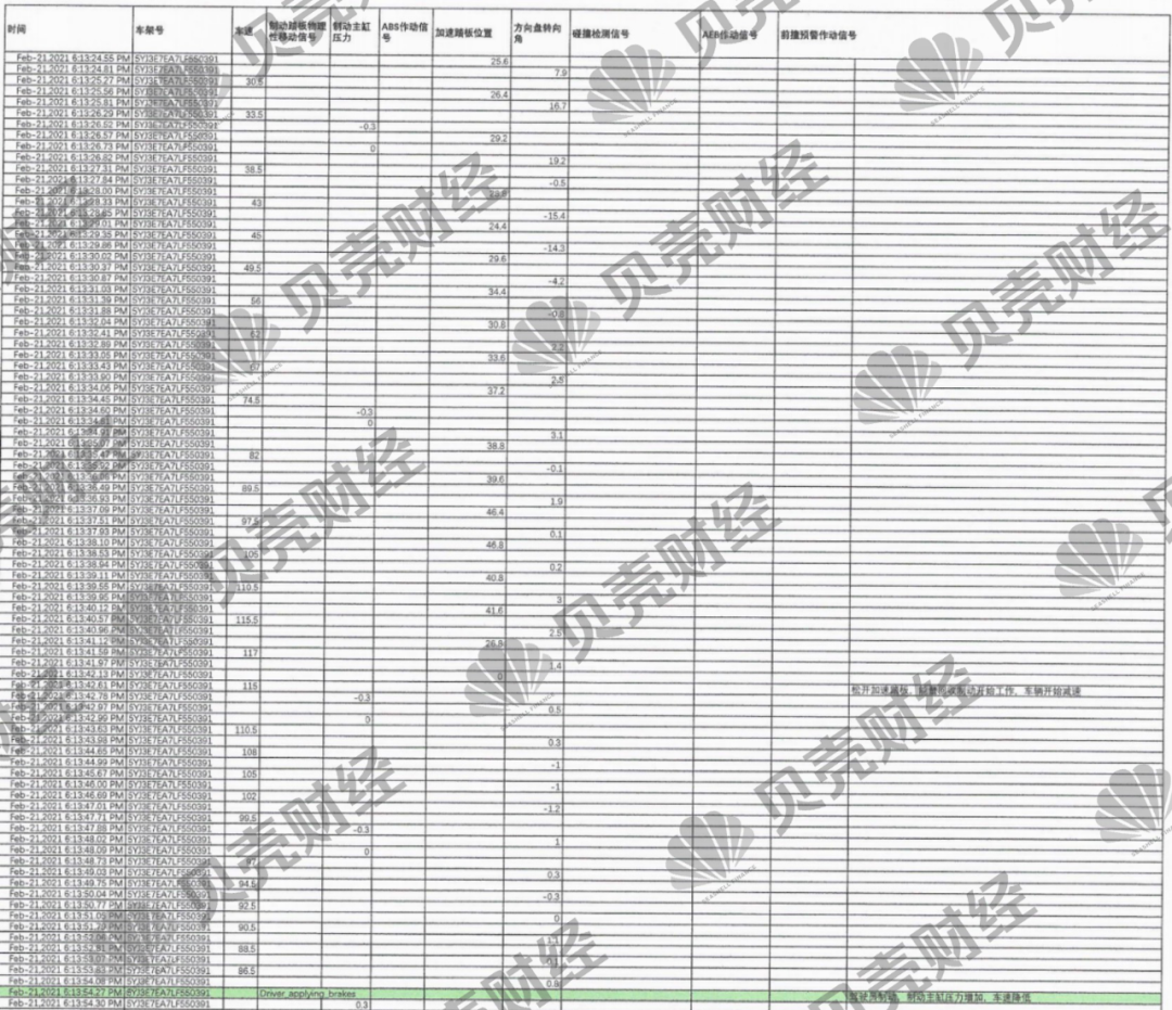 然而,在监管部门的责令监督下,特斯拉公司向我提供了一份经过处理,选择性筛选过的并不完整的数据,经过我们对比,其中缺少了几项重要项目参数,包括刹车踏板位移,电动机转速及扭矩等。