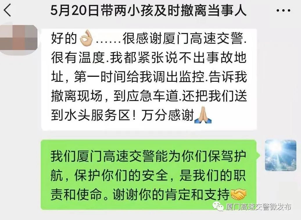 厦门高速交警支队民警池和强:我们后面了解到,她是第一次上高速,对路况不熟悉,情绪也很激动。两个小孩撤离到应急车道还没有一分钟的时候,就有一辆货车撞到了这辆小车,要是没有及时撤离的话,后果不堪设想。