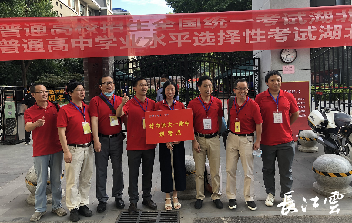 考试现场,不少送考老师为考生们竖起大拇指,为他们加油。