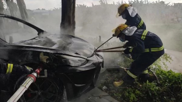 5月29日17时许,海口发生一起汽车自燃事故。从现场图片可以看到,一辆白色汽车停在道路上,猛烈的火势将车辆团团包围,最后车辆被烧得只剩下骨架……