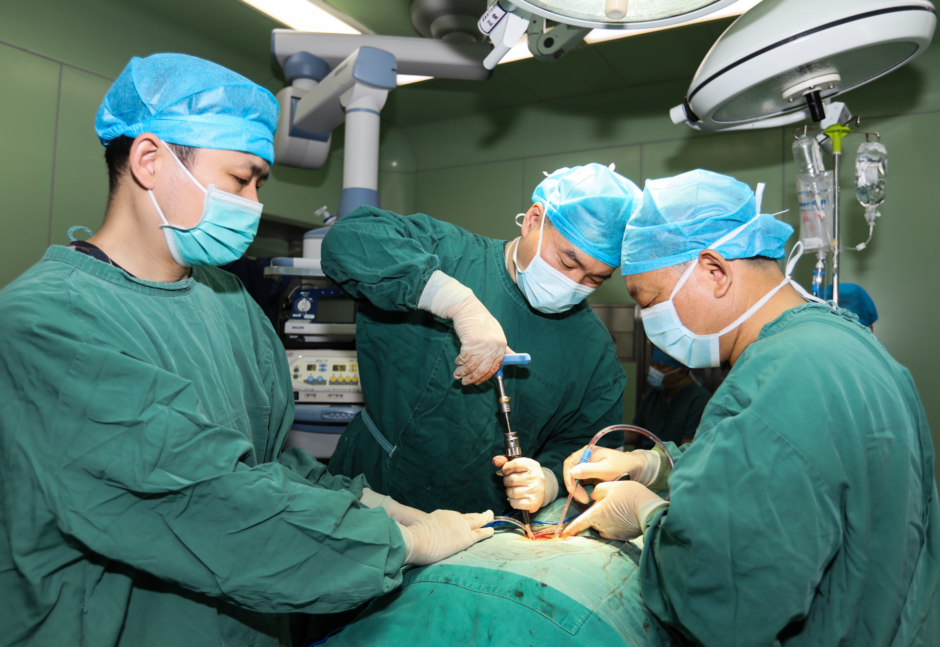 随后,各专家与广水市第一人民医院相关科室负责人前往病房查房、讨论疑难病例。在湖北陈孝平科技发展基金会的资助下,同济医院骨科程浩主任医师与麻醉科杨曙光主治医师免费为当地患者进行了腰椎间盘手术。