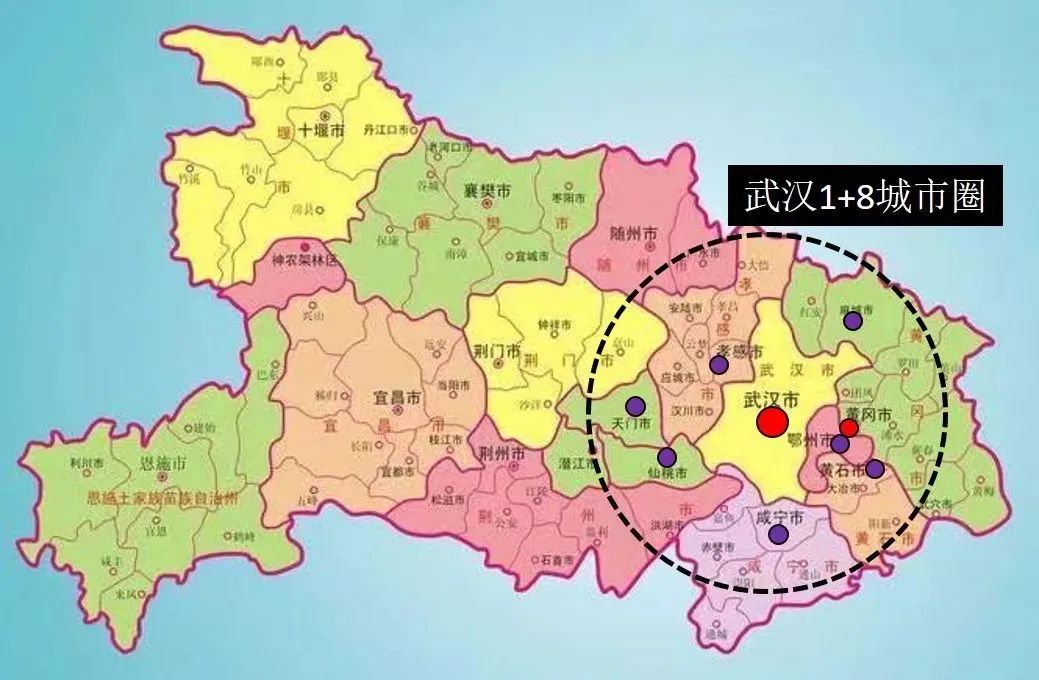从人口上看,“1+8”武汉城市圈9个城市的人口一共约3200万人,重庆也是3200万人;“1+8”9个城市2019年的GDP总和为27681亿,这比重庆2019年23605.8亿还要多4000多亿;从覆盖面积看,“1+8”城市圈的面积为57800平方公里,比82402平方公里的重庆小30%。那么,基于武汉经济发展的能量,再把这几个城市的潜力给激发出来,那么“1+8”城市圈的能量肯定不亚于重庆,未来甚至有成为直辖市的潜力。