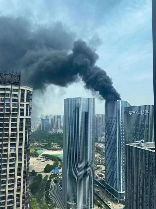 记者已确认,失火地点是武汉市泛海附近一工地。
