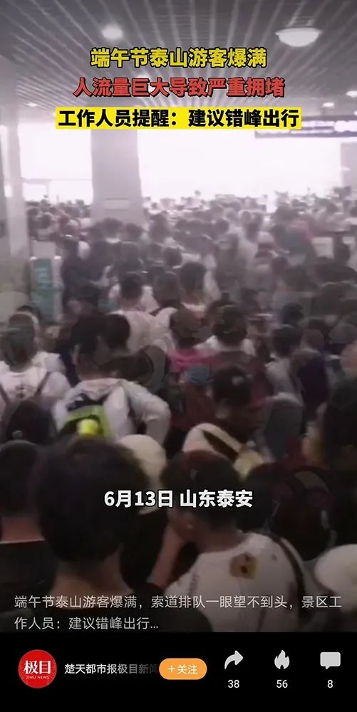 端午小长假期间,不少人选择外出旅游,泰山成为这个端午节的热门旅游目的地。然而,昨天(6月13日),不少游客却在泰山上滞留。据网传视频显示,昨天,大量游客在泰山之巅看完日出后,准备下山,在泰山索道处拥堵、滞留。