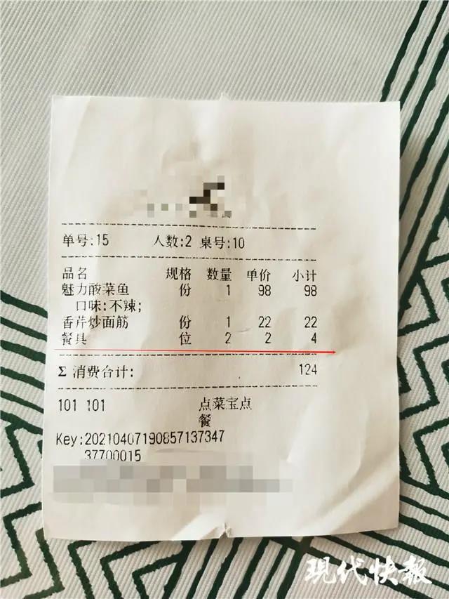 雨花台区市场监督管理局赛虹桥分局局长王晓伟表示,根据《江苏省消费者权益保护条例》第三十五条:餐饮业经营者应当以显著方式向消费者明示所提供商品和服务项目的价格、数量和规格。未事先明示告知的,不得收取费用。餐饮业经营者应当提供符合卫生标准的餐具,使用集中消毒套装收费餐具的经营者应当同时提供免费餐具供消费者选择。
