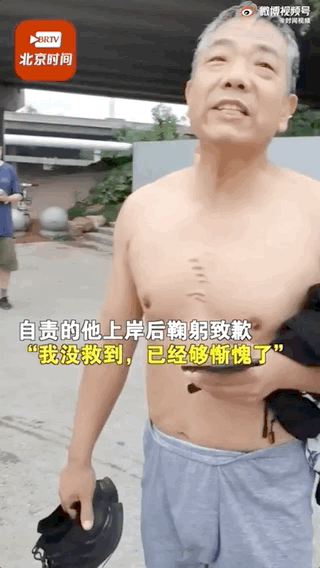 一位大叔跳河救人没能成功鞠躬道歉的视频