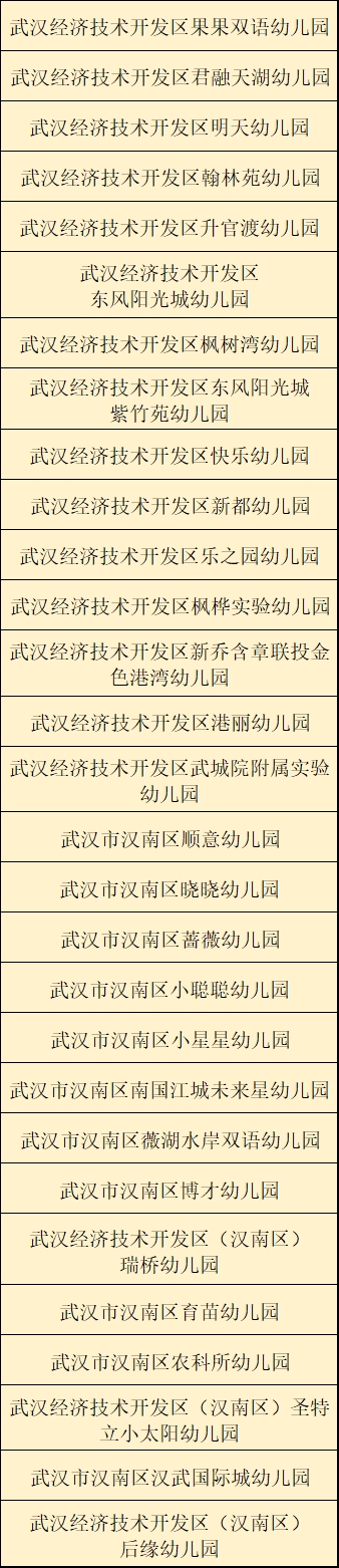 日前,武汉经开区(汉南区)确认29所民办幼儿园为普惠性民办幼儿园,名单如下: