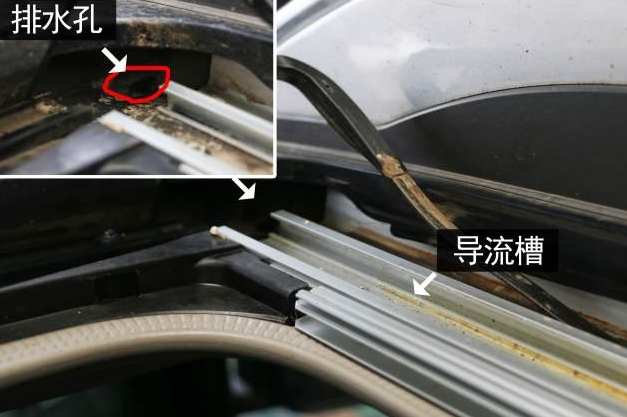 当雨势过大时,一部分雨水势必会渗入天窗内部。那为什么没流到车内呢?