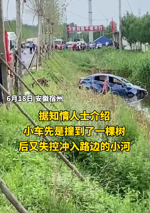 6月18日下午,安徽宿州,一辆小轿车冲入省道301泗县大庄镇后卢庄附近路边小河,事故造成4死1伤。