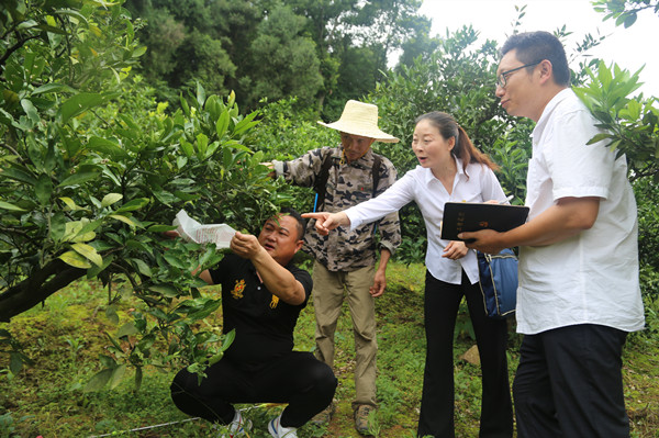 点军区纪检监察干部向群众了解柑橘大食蝇防治有关工作开展情况