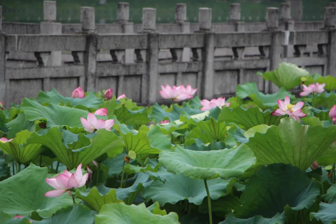 幸福湾的荷花又野又乖,荷花蔓延生长的野生感让你仿佛置身郊外,公园里的别致造景又衬得它分外乖巧。