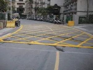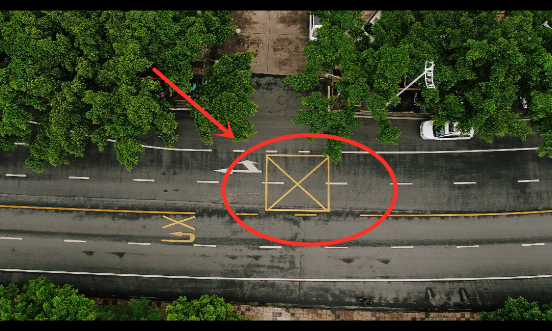 因为地上有黄色网格线。