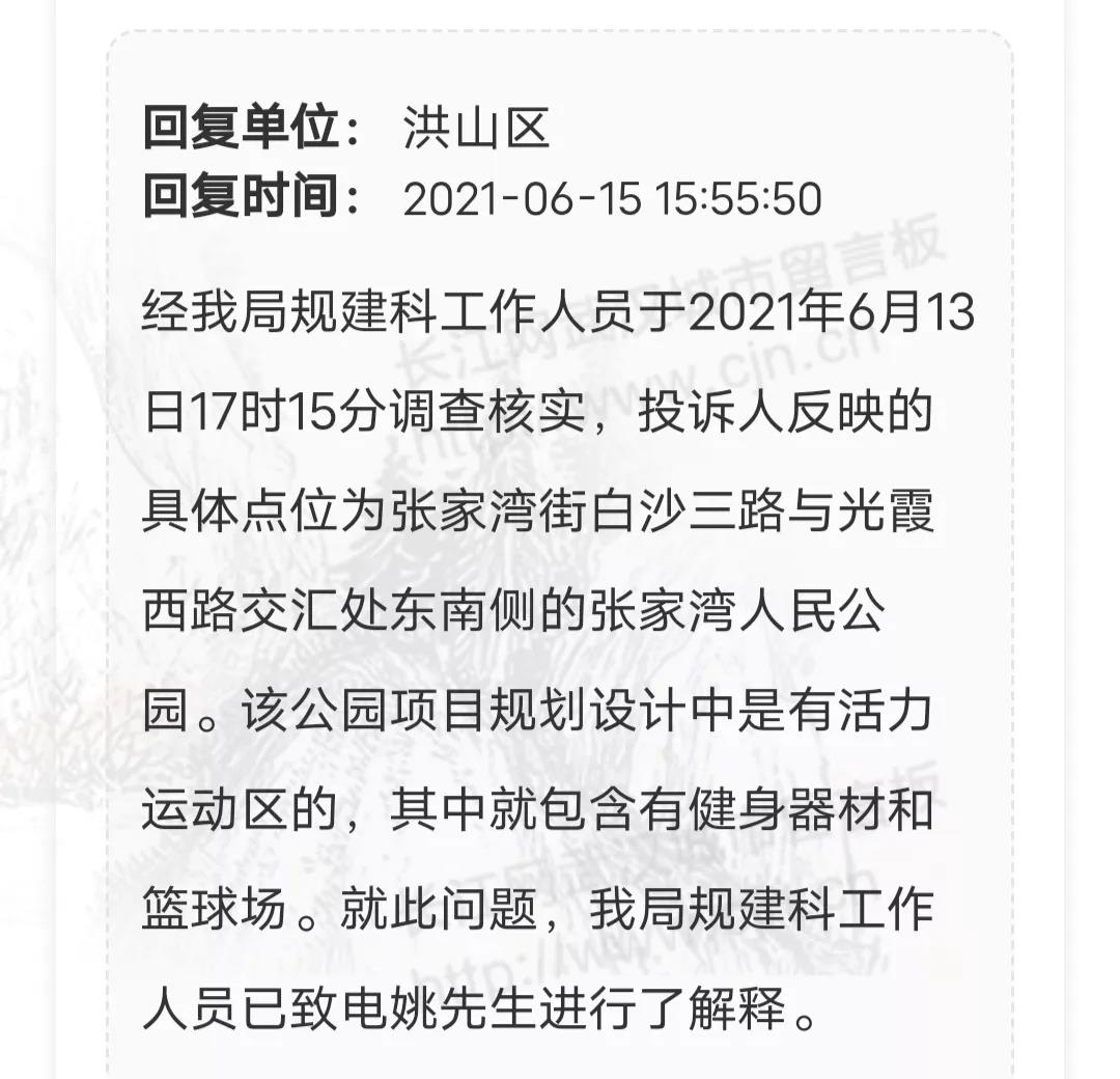 公园规划建设一直是武汉城市留言板上网友们关注的热点,能否增加儿童设施、新建篮球场......对于这些疑问,相关部门作出了回应。