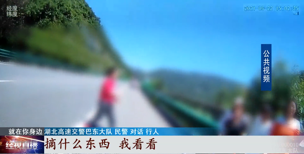 6月22日当天,在沪渝高速湖北巴东段,几个大人竟带着小孩在高速公路中央隔离带上摘李子。