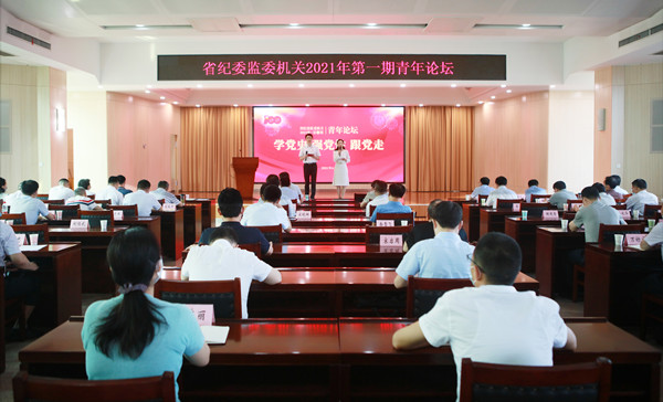 在中国共产党的百年华诞到来之际,6月25日下午,一场以“学党史、悟思想、办实事、开好局”为主题的青年论坛,在省纪委监委机关八楼如期举行。这个下午,12名青年干部代表与200多名观众一道,重温党史、追忆初心。