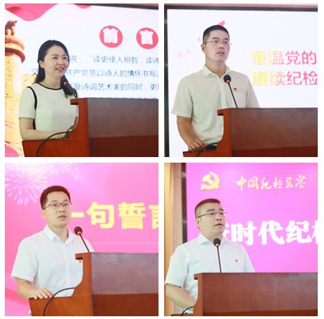 “中华儿女多奇志,世无难事志竟成;不要人夸颜色好,只留清气满乾坤;雄关漫道真如铁,人间正道是沧桑!”第一审查调查室的程晓丽率先登台,用三句气势如虹的诗颂扬了蔡以忱、董必武、朱德等老一辈革命家们的高尚品格。妙笔诗言志,一首首令人耳熟能详的革命时期诗句,带领大家在回顾党的纪律建设历史中,感受纪检人“铁肩担道义”的拳拳初心。