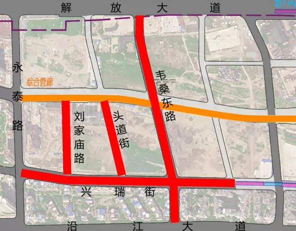 韦桑东路连通解放大道与沿江大道,形成干路网,能够有效缓解解放大道交通压力,方便周边居民出行。头道街、刘家庙路、兴瑞街为支路,主要服务周边江岸铁路和谐家园、华发、绿城、华润、滨江苑(一、二期)等5个小区居民的出行。同时,道路通车也为商务区的加速建设提供了良好的交通条件,助推商务区发展。