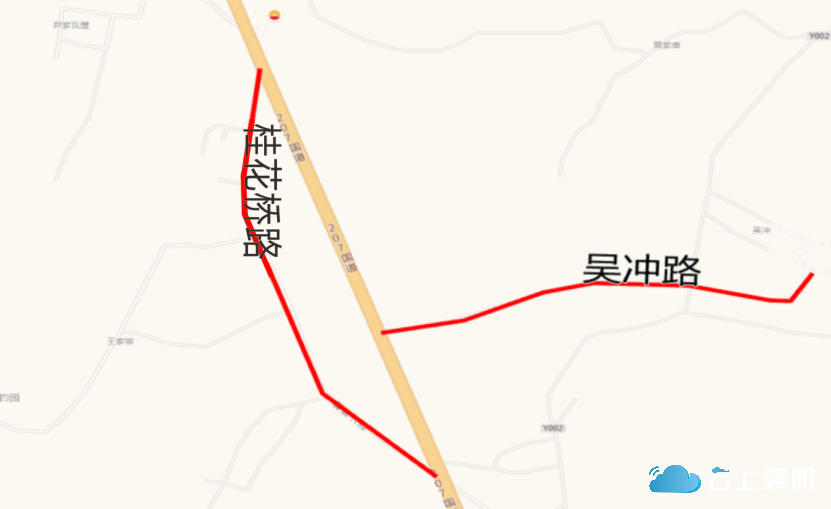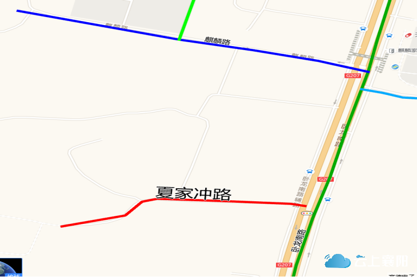 6.夏家冲路:此路位于檀溪街道麒麟社区六组,长约1300米,宽约5.5米,呈东西走向,西起军分区教导队(磨旗山脚下),途经凤凰村南、麒麟社区六组菜地、襄水,东止卧龙南路襄阳市国投源墅营销中心(在建工程南侧)。因该路在老夏家冲与麒麟社区六组中间,为留住乡愁记忆,故命名为夏家冲路。