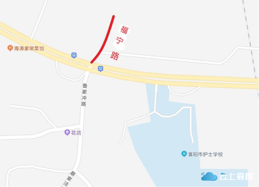 20.福宁路:此路位于隆中街道花栎木店村二组,长约40米,宽约3米,南北走向,南起隆中大道,北至花栎木店二组菜地。福宁寓意幸福安宁,为表达对当地居民美好生活的祝福,故命名为福宁路。