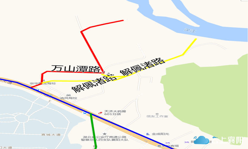 16.解佩渚路:此路位于隆中街道黄家湾社区六组,长约600米,宽约3.5米,呈南北走向,南起隆中大道职业技术学院正对面独活药店旁,北至汉江边。因解佩渚位于万山附近的汉江中,来源于东汉文学家张衡在其《南都赋》注引《韩诗内传》中汉江神女解佩赠郑交甫的神话故事,故命名为解佩渚路。