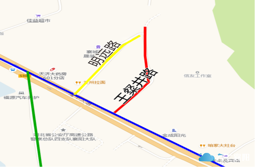 22.日新路:此路位于隆中街道花栎木店村四组菜地,长约150米,宽约3.5米,呈南北走向,北起隆中大道(豆豆超市东侧),南止303省道。因此路位于花栎木店村四组,连接新旧303省道,见证了现代交通事业的发展,采词“苟日新,日日新,又日新”故命名为日新路。