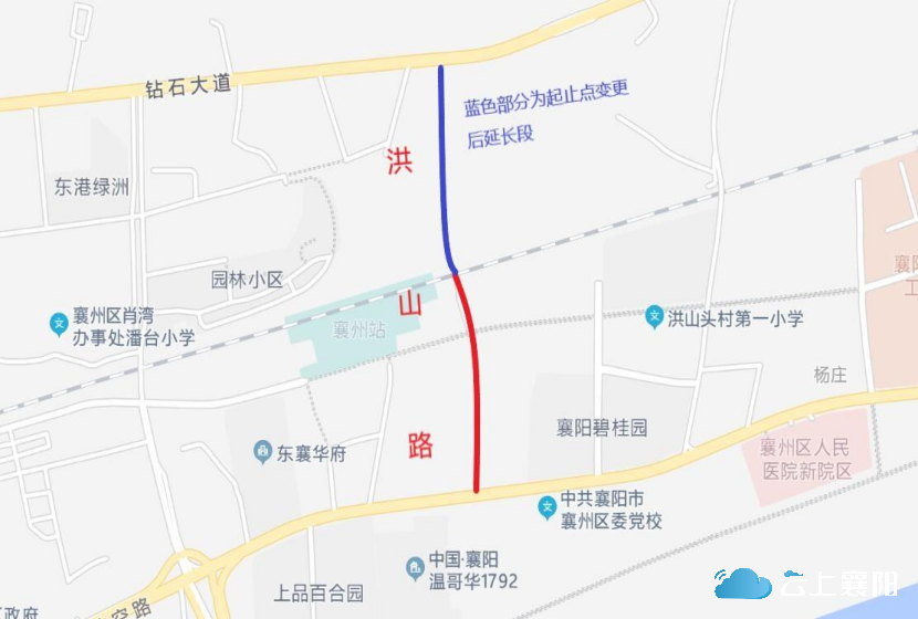 7.洪山路:该路位于肖湾街道,原起止点为北起汉丹铁路,南至航空路。因道路改扩建,现将起止点变更为北起钻石大道,南至航空路。变更后该路长1300米,宽50米,呈南北走向。