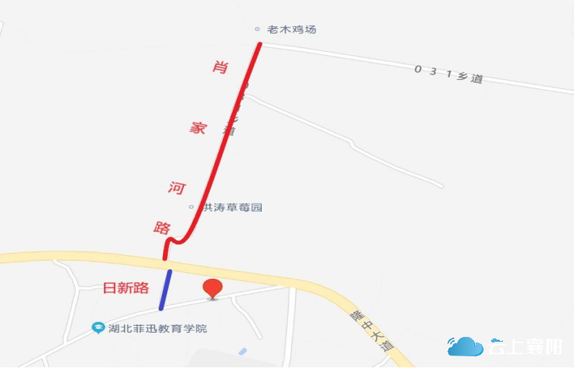 21.肖家河路:此路位于隆中街道花栎木店村四、五组,呈南北向东,长约1500米,宽约4.5米,南起隆中大道,北止031乡道。因该路位于肖家河流经之处,为保留老地名、尊重历史,留住乡愁记忆,故命名为肖家河路。