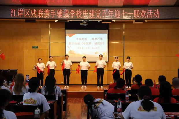 6月30日,武汉市江岸区残联携手江岸区辅读学校开展了“学党史 颂党恩 跟党走”庆建党百年迎七一联欢活动。多年来辛勤耕耘在特教战线的爱心使者们,以及多年来辛苦奋斗在扶残助残第一线的工作者们,通过形式多样的文艺内容,展现出他们昂扬向上的精神风貌,向党的百年华诞献上最美好的祝福。