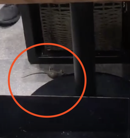 根据顾客拍摄的视频显示,老鼠的尸体就位于顾客座位的正下方。