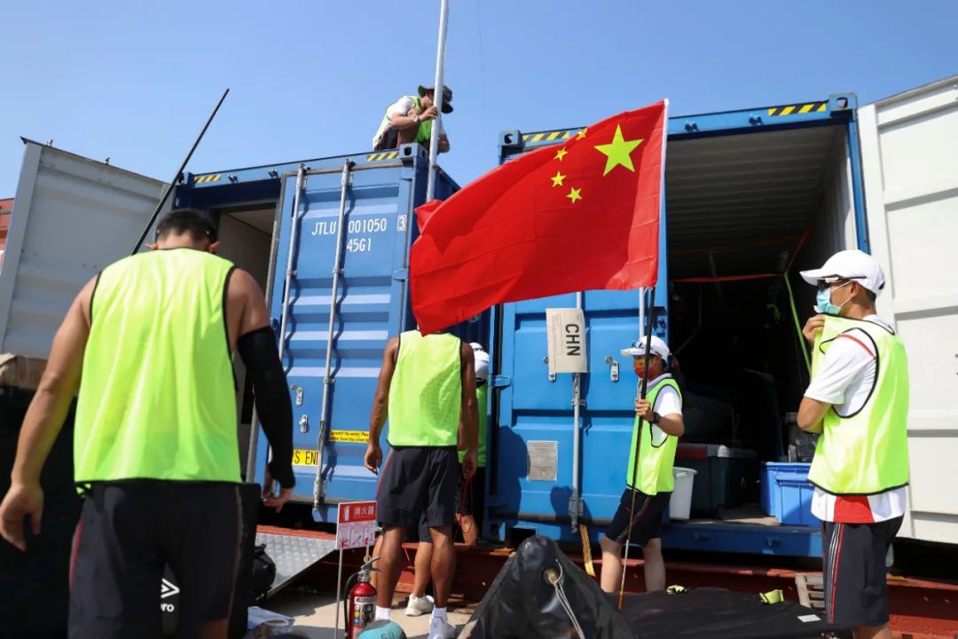 7月11日,中国帆船帆板队成员在比赛地熟悉环境并整理物资。中国帆船帆板队10日乘机抵达东京,是第一批抵达东京的中国运动员。新华社记者李明 摄