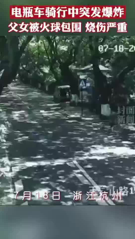 18日上午,浙江杭州西湖景区玉皇山路,爸爸电动车带着女儿,行驶中的电动车突然烧成一团火球!
