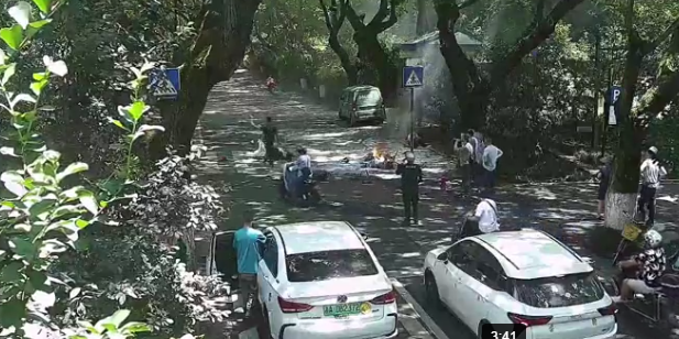 面对这突如其来的一幕,周围市民迅速反应,短短10秒钟,附近保安、路人、过路司机纷纷站了出来。