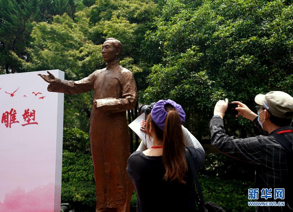 这是6月11日在上海复旦大学《共产党宣言》展示馆拍摄的陈望道雕塑。新华社记者 刘颖 摄