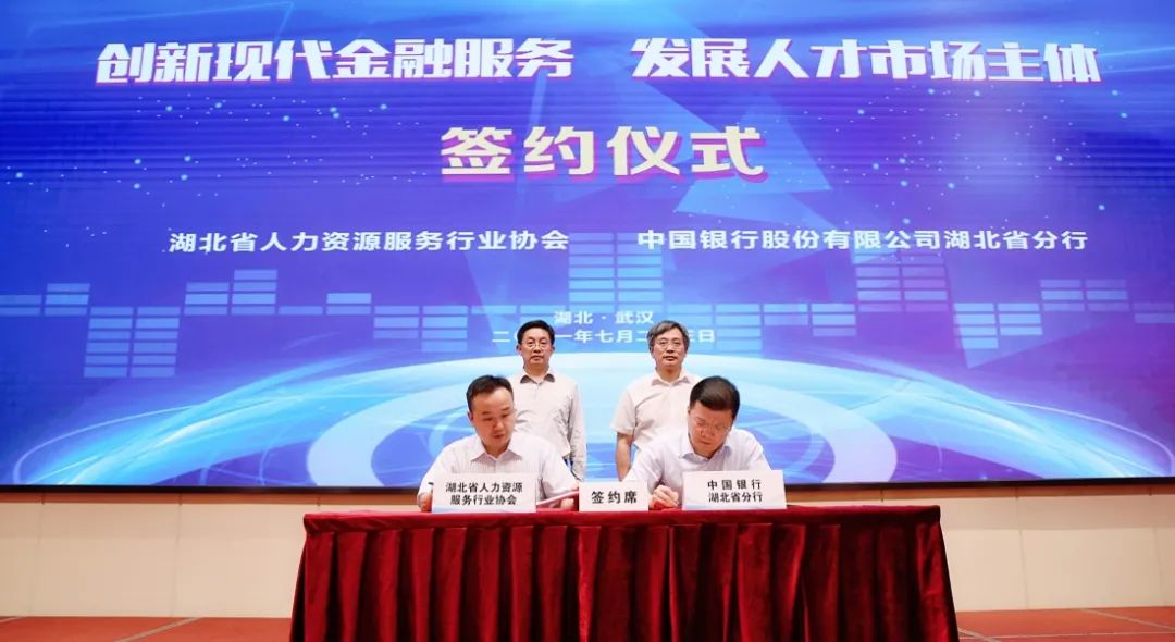 湖北省人力资源服务行业协会与中国银行湖北省分行签订战略合作协议,双方表示,要建立长期战略合作关系,推动在各领域的深度合作、协同发展,合力探索“人力资源+金融”服务的新模式、新途径、新举措,推动湖北经济与人力资源服务高质量发展。