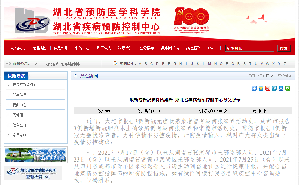 一、2021年7月17日(含)以来从湖南省张家界市来鄂返鄂人员、2021年7月23日(含)以来从湖南省常德市武陵区来鄂返鄂人员、2021年7月25日(含)以来从四川省成都市青羊区来鄂返鄂人员请主动到当地社区进行健康申报,并配合当地疫情防控指挥部的所有防控措施。如有疑问可拨打湖北省各级疾控中心咨询热线,号码附后。