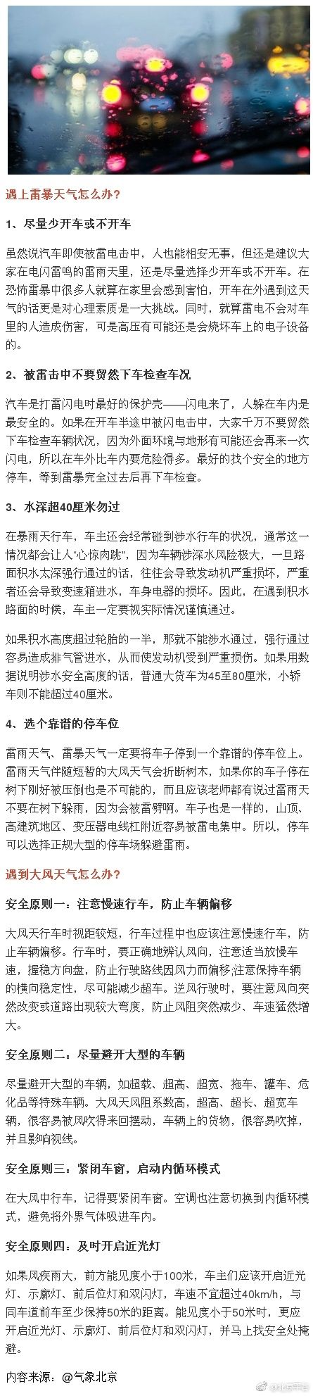 随着夏季到来,雷暴大风等极端天气也多了起来。那么,雷暴和大风天气的时候,开车应该注意的事项有哪些?下面小编带大家一起来看一看,希望对大家有所帮助!