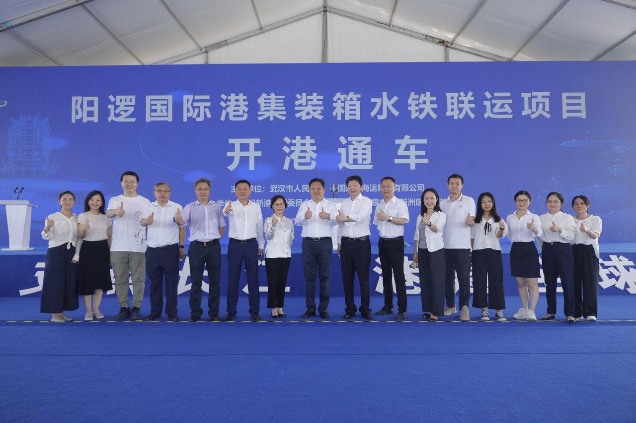 今天(8月1日)上午9时28分,阳逻国际港集装箱水铁联运项目开港通车。在武汉中远海运港口,长江蓝天之间,一字排开的“中远海运蓝”桥吊崭新亮相,向全球传递武汉这座英雄城市的邀约。