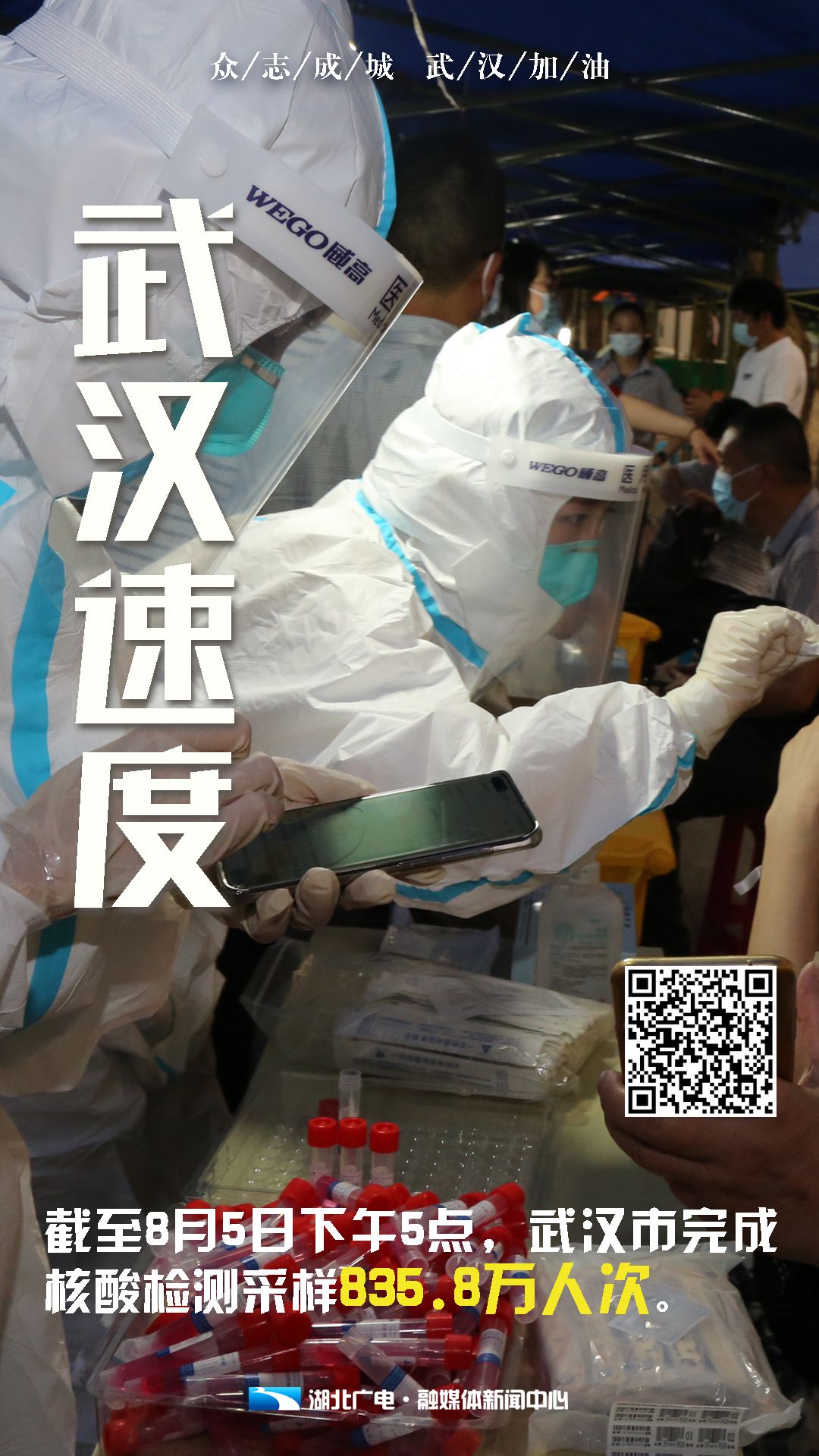 湖北广电融媒体记者从武汉市了解到,截至8月5日17时,武汉市完成核酸检测采样835.8万人次,累计检测303万人次,占采样人数36%。预计到5日24时,可完成检测400万人次。 (湖北广电融媒体记者 谢珍 责任编辑 唐元) 责任编辑 唐元