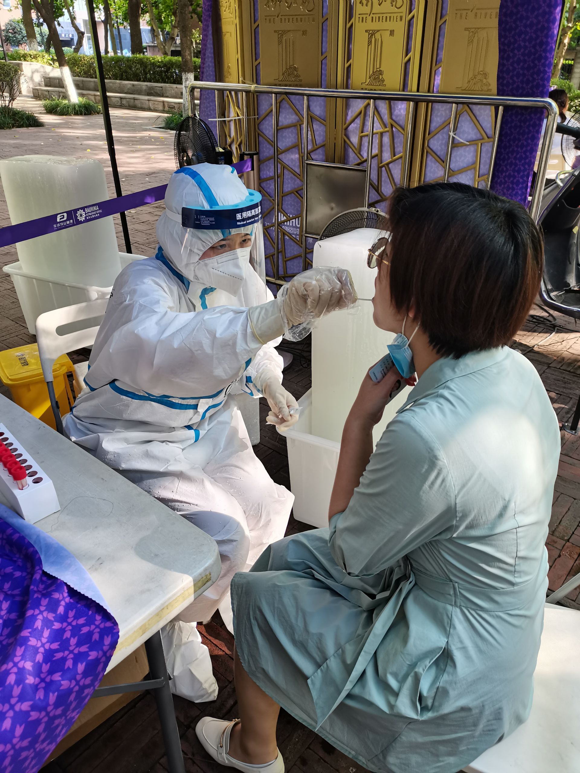 “穿着防护服很热,但是我年轻不怕,休息的时候贴着冰降降温继续战斗。”黄玥一脸坚定的说完,又跟同事一同投入核酸采集的工作中去了。