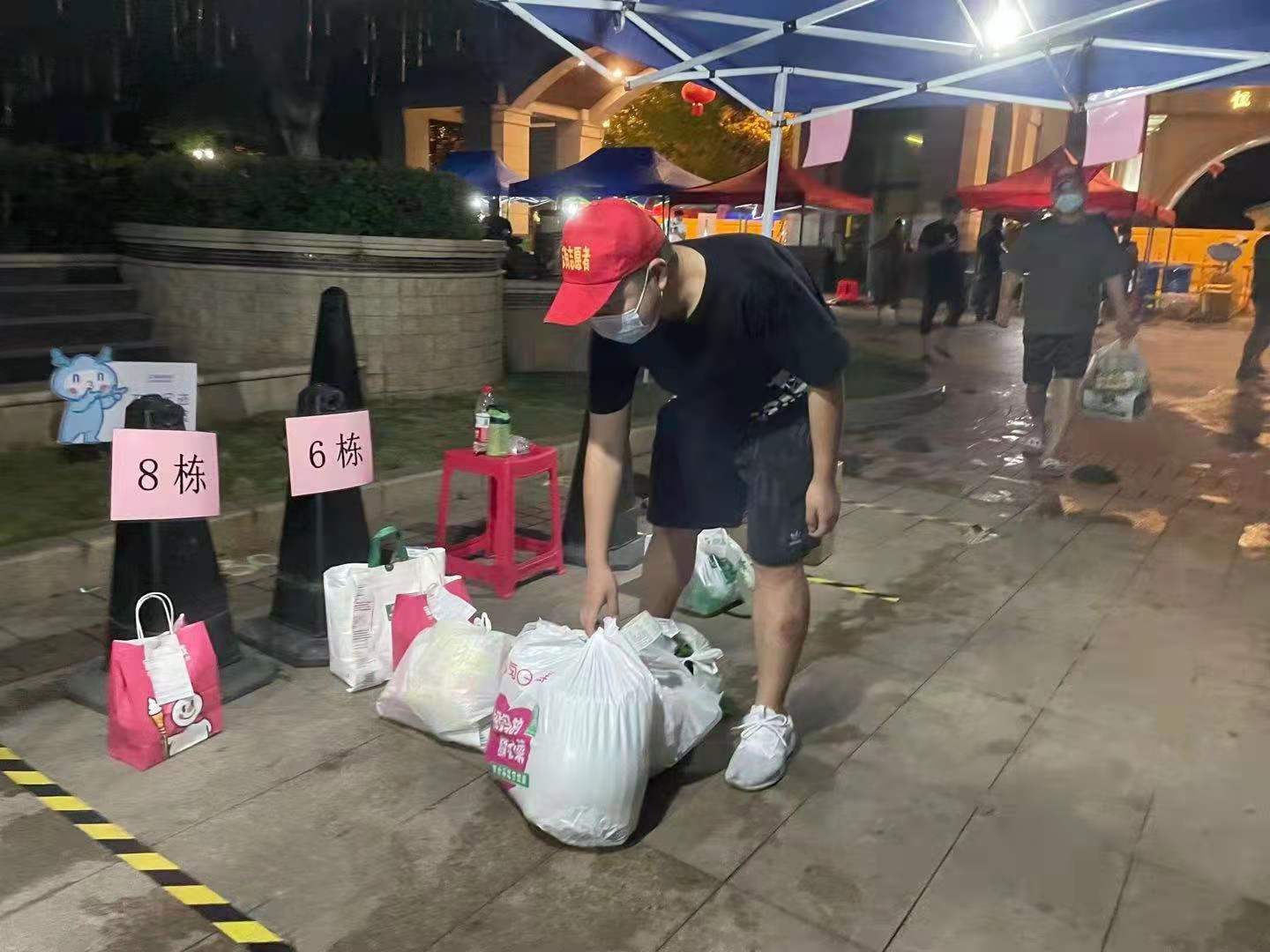 8月10日,是李熙在社区服务的第三天。他的主要工作,就是将社区内居民点的外卖,从门口拿到指定区域进行消杀后,按楼栋分捡好,方便居民快速领取自己的外卖物资,减少与他人的接触。