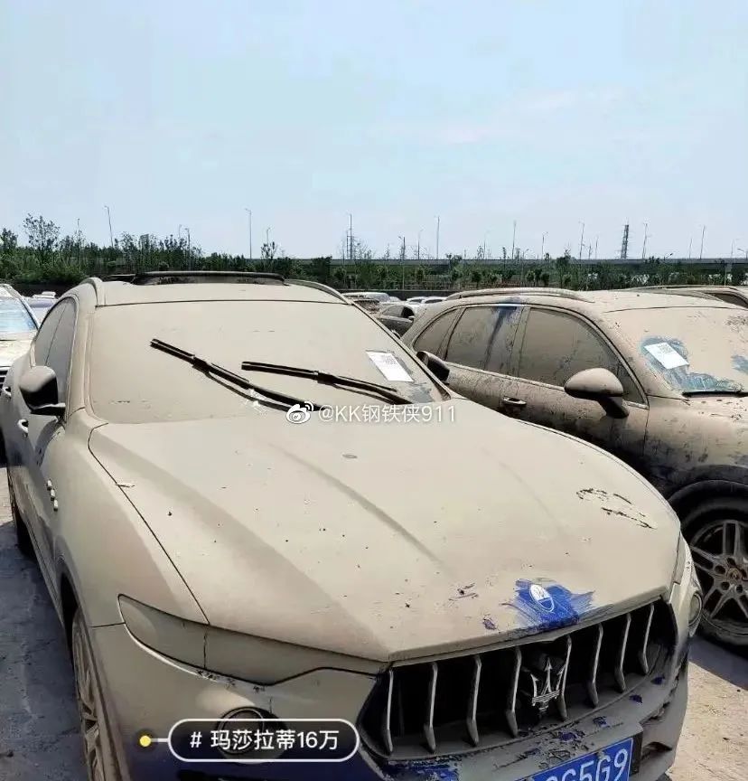 还有这辆淹到车顶的玛莎拉蒂Levante,据说16万就能买走。