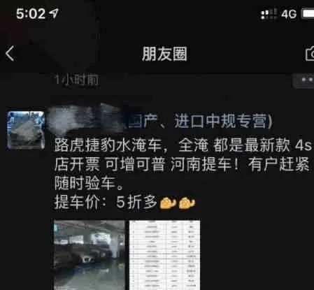 看着二手车贩子如日中天的抢夺水淹车资源,同样损失惨重的新车4S店坐不住了,这不河南一家捷豹路虎4S店就开始了水淹新车大甩卖!