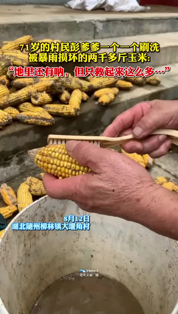 随县三里岗镇元宝街的晏爹爹在冲洗矿泉水,店老板胡先生说冲洗消毒,看还能不能出售,对于这一次的损失,他也很无奈。